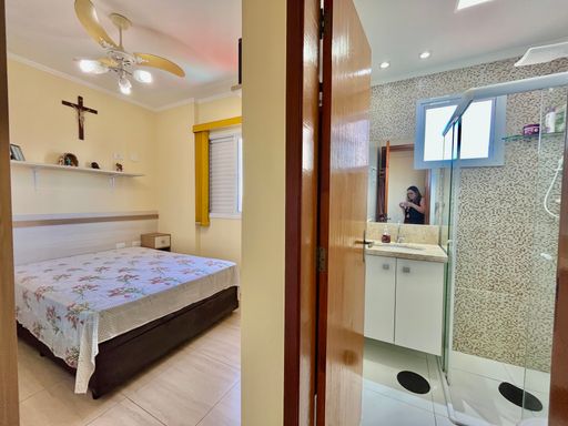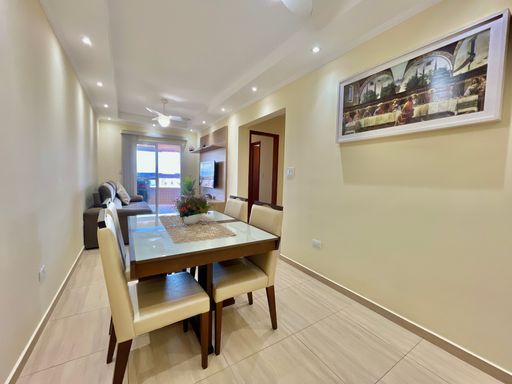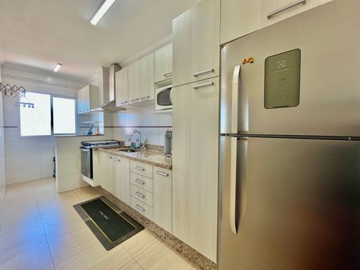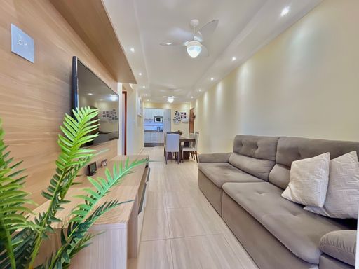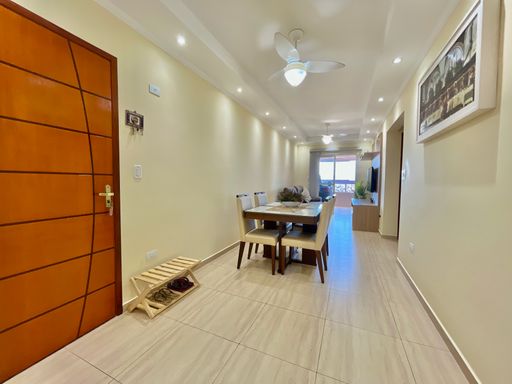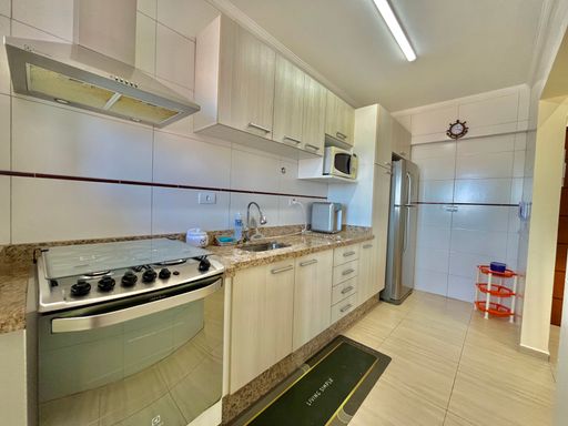 A sala é espaçosa e mobiliada, a cozinha é iluminada e funcional, e a varanda gourmet com churrasqueira ecológica é perfeita para momentos de lazer. O apartamento está totalmente mobiliado, sendo retirados apenas itens pessoais, decoração e filtro de água. O condomínio oferece piscina e salão de festas, garantindo conforto e lazer no dia a dia. Localizado a apenas 8 minutos a pé da praia e próximo a comércios em geral, o imóvel é de único dono e aceita financiamento bancário.