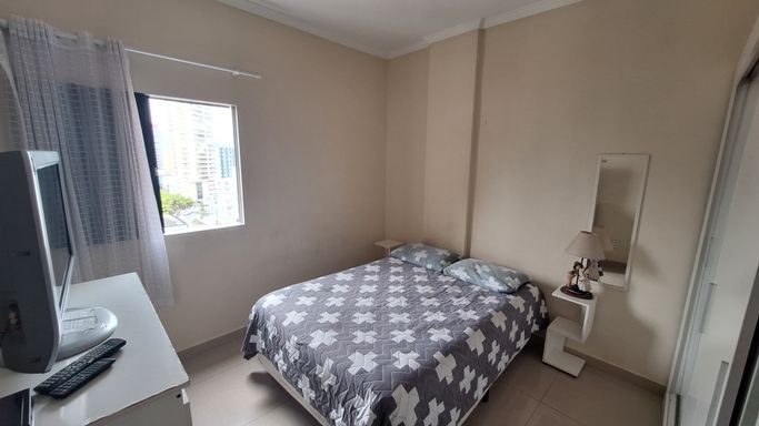 Apartamento à venda em Praia Grande na Vila Guilhermina. Este imóvel oferece uma combinação de localização privilegiada, conforto e praticidade, ideal para quem busca viver de frente para o mar e próximo à feirinha da Guilhermina. Com 104 metros de área útil, o apartamento foi reformado e apresenta ambientes bem distribuídos, incluindo sala espaçosa, cozinha com bancada estilo ilha e quartos com móveis planejados. São 2 quartos, sendo 1 suíte, além de 1 banheiro social e 1 vaga livre. O prédio aceita financiamento bancário e oferece estrutura completa com portaria presencial 24h, salão de festas, salão de jogos e academia, garantindo segurança e comodidade para toda a família.