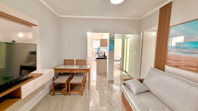 Apartamento à venda em Praia Grande no bairro Guilhermina, com 57 metros de área útil, ideal para quem busca praticidade, boa localização e fácil acesso à praia. O imóvel conta com 2 dormitórios bem distribuídos, 1 banheiro, sala espaçosa e confortável, cozinha ampla e funcional e quartos espaçosos, oferecendo um bom aproveitamento dos ambientes. Possui 1 vaga de garagem, está reformado, semimobiliado e localizado a apenas 100 metros da praia. O prédio não possui elevador e oferece financiamento bancário, sendo uma excelente opção para moradia ou investimento.