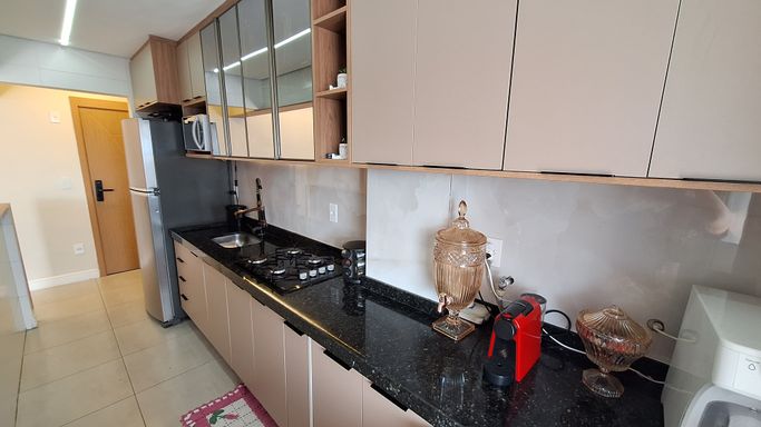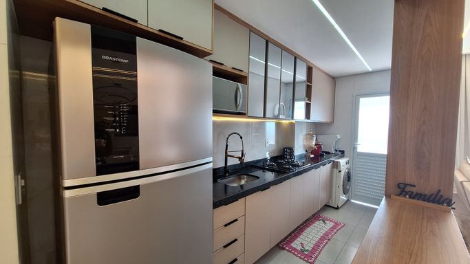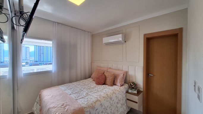 Apartamento à venda na Vila Guilhermina em Praia Grande, localizado próximo à Av. Presidente Kennedy, ao PS Central e ao Burger King, oferecendo praticidade no dia a dia com fácil acesso a serviços e comércios. O imóvel possui 70 metros de área útil, distribuídos em 2 quartos, sendo 1 suíte, além de 1 banheiro social, proporcionando um espaço funcional para moradia ou veraneio. Conta com 1 vaga livre de garagem e mobília inclusa, permitindo utilização imediata após a compra. A sacada gourmet com churrasqueira elétrica amplia a área social e cria um ambiente adequado para refeições e momentos de convivência. Aceita financiamento bancário, facilitando as condições de aquisição. O empreendimento dispõe de portaria presencial e estrutura de lazer com piscina, salão de festas, salão de jogos, academia e brinquedoteca.