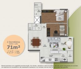 O imóvel é novo e conta com 2 dormitórios, sendo 1 suíte, ambientes bem distribuídos e funcionais, ideal para quem busca modernidade e praticidade no dia a dia. Dispõe ainda de 2 vagas de garagem, um diferencial importante para a categoria.