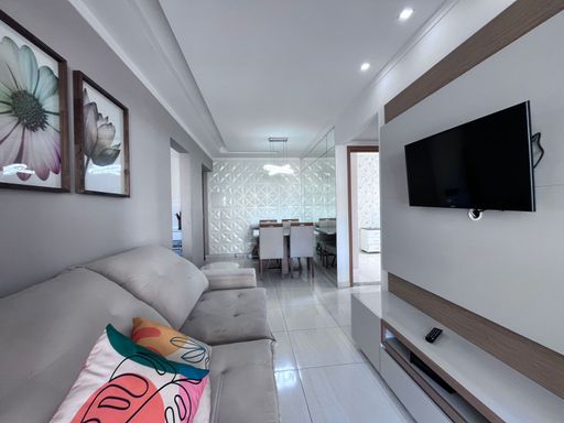 Este apartamento moderno com 72 m² foi planejado para oferecer funcionalidade, conforto e um ambiente agradável. Possui dois dormitórios, sendo uma suíte, banheiro social, sacada integrada com o quarto, cozinha ampla totalmente planejada e área de serviço bem arejada. O imóvel conta ainda com acabamento de qualidade, incluindo sanca de gesso, porcelanato, papel de parede decorativo, além de ar-condicionado e ventilador instalados. Para mais segurança e praticidade no dia a dia, o apartamento possui fechadura eletrônica e vista livre, proporcionando mais iluminação natural e ventilação.