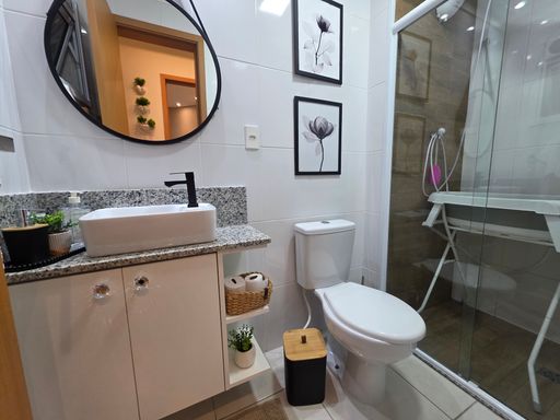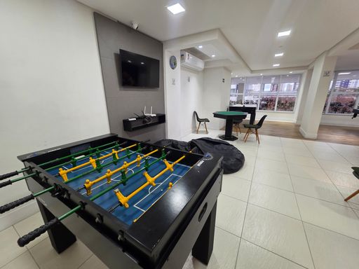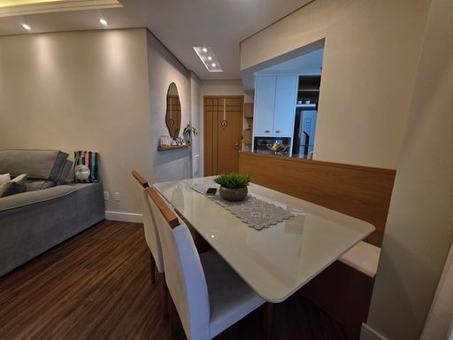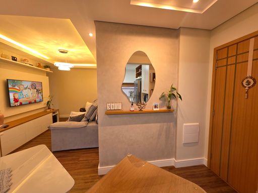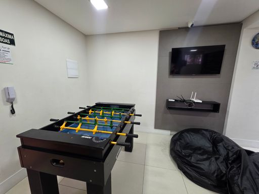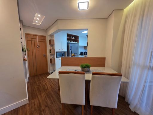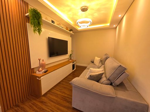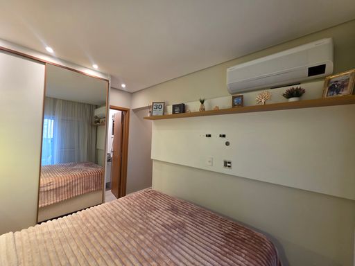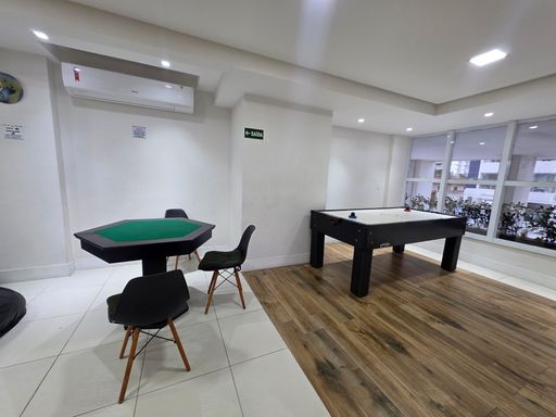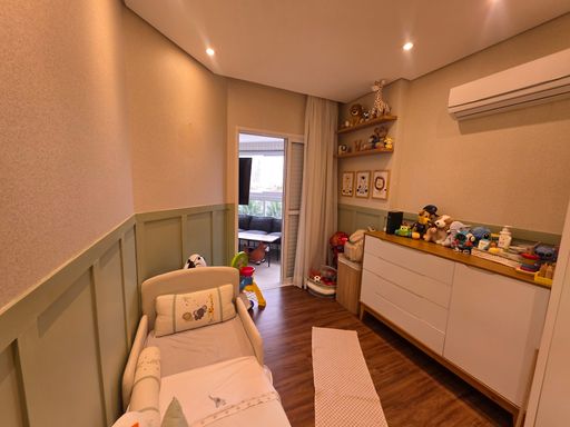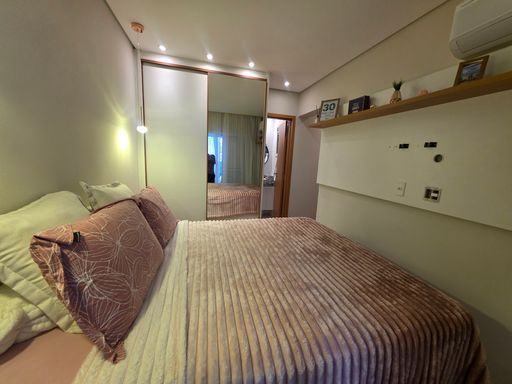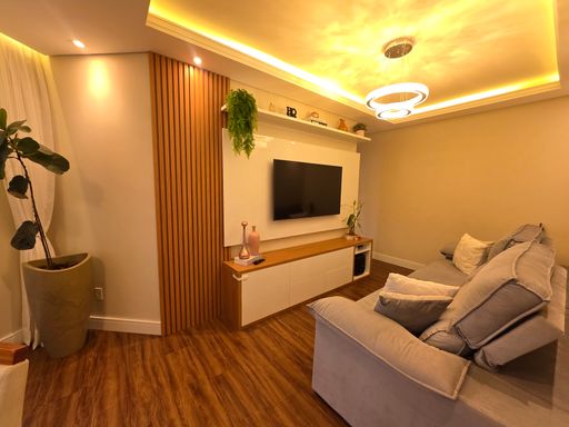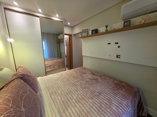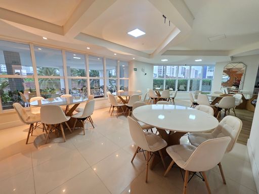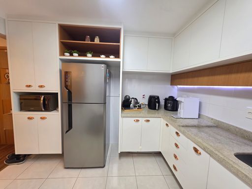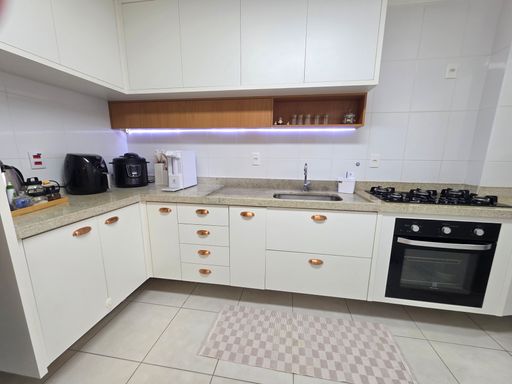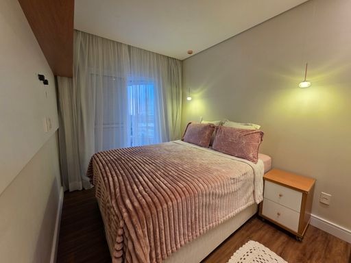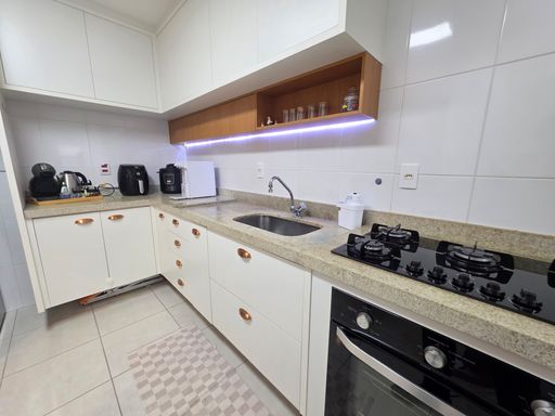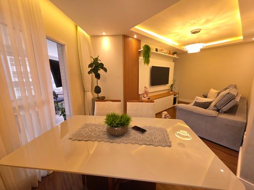 A sala é espaçosa e integrada à sacada gourmet com churrasqueira a carvão, perfeita para momentos de lazer e convivência. A cozinha planejada garante funcionalidade e estilo, enquanto os quartos, com móveis sob medida, oferecem conforto e organização. O apartamento está totalmente mobiliado e permanecerá apenas com a mobília planejada, ideal para quem busca praticidade.