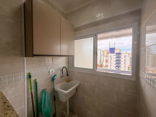 Apartamento à venda em Praia Grande na Guilhermina com 2 Suítes, localizado a 450 metros da praia, ideal para quem busca praticidade e um imóvel pronto para uso. Com 79 metros de área útil, o apartamento conta com 2 quartos, sendo 2 suítes, além de 1 lavabo, oferecendo uma distribuição funcional dos ambientes. A sala é espaçosa e integrada à sacada gourmet com churrasqueira elétrica, proporcionando um ambiente adequado para convivência. A cozinha é planejada e os quartos possuem armários, mantendo a organização e aproveitamento dos espaços. O imóvel dispõe de 2 vagas de garagem e será entregue conforme apresentado nas fotos. A forma de pagamento é somente à vista, não aceita financiamento bancário e não aceita permuta.