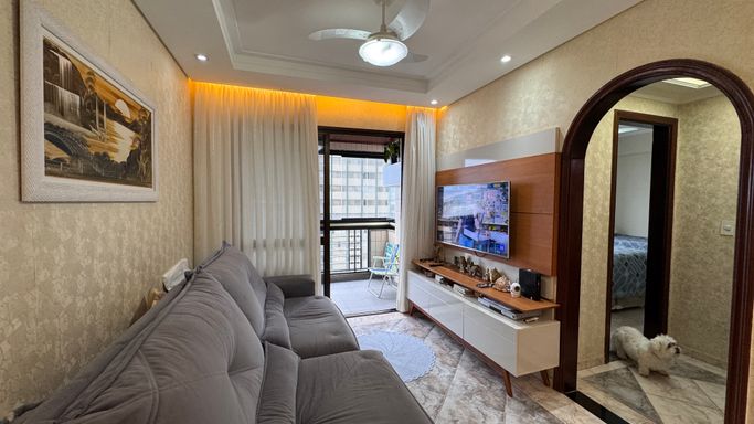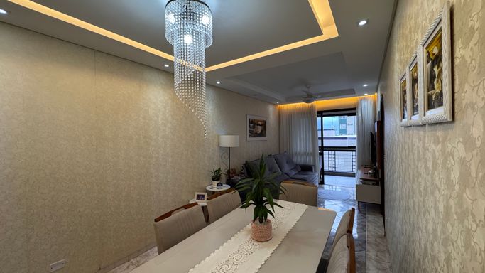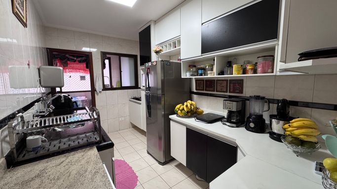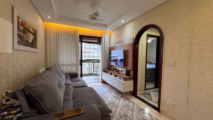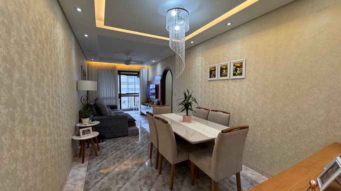 Apartamento à venda em Praia Grande na Guilhermina, ideal para quem busca praticidade, localização privilegiada e proximidade com o mar. Este imóvel aceita financiamento bancário e está localizado a apenas 30 metros da praia, oferecendo uma excelente oportunidade tanto para moradia quanto para investimento. O apartamento conta com 80 metros de área útil, distribuídos de forma funcional, com 1 suíte, 1 banheiro social, sala espaçosa, cozinha planejada e quartos com móveis planejados. Possui ainda 2 vagas demarcadas, proporcionando mais comodidade no dia a dia. A sacada oferece vista para o mar e também para a feirinha de artesanato da Guilhermina, agregando charme e valorização ao imóvel. O apartamento permanecerá somente com mobília planejada, garantindo praticidade para o novo proprietário.
