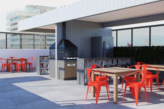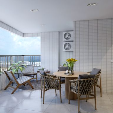 O apartamento possui uma ampla varanda gourmet, ideal para momentos de lazer e confraternização com amigos e familiares, aproveitando ao máximo a proximidade com a praia e a brisa do mar.