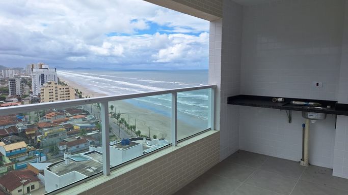 Apartamento à venda em Mongaguá com sacada gourmet e vista mar Jardim Praia Grande, Mongaguá-SP