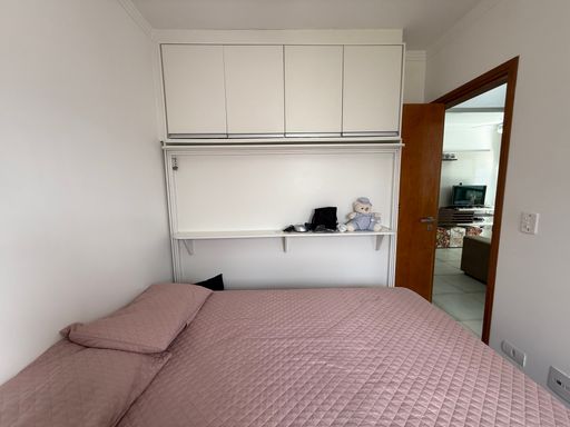 O apartamento possui 66 metros de área útil e conta com uma distribuição prática dos ambientes. São 2 quartos, sendo 1 suíte, além de 1 banheiro social que atende aos demais espaços do imóvel. A sala é espaçosa e integrada à sacada gourmet, proporcionando um ambiente confortável para convivência.