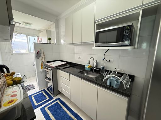A cozinha conta com móveis planejados e permanecerão no imóvel a cozinha planejada, o sofá, o rack da sala, a cama embutida do quarto e o armário do quarto. O apartamento possui 1 vaga coletiva de garagem e aceita financiamento bancário, facilitando o processo de aquisição.