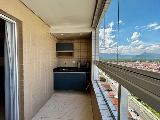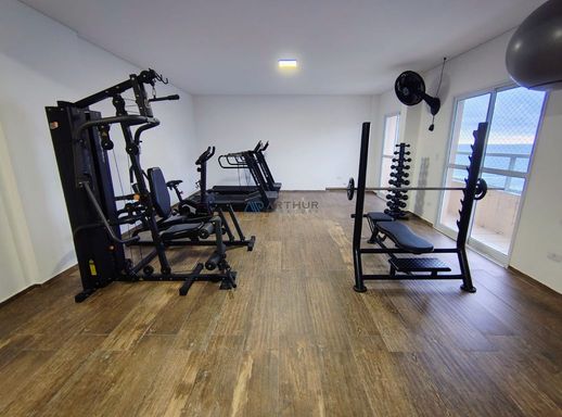 Apartamento à venda em Praia Grande no Jardim Real com planta bem distribuída e 82,32 metros de área útil. O imóvel conta com 2 quartos, sendo 1 suíte, além de 1 banheiro social, oferecendo funcionalidade no dia a dia. Possui 1 vaga de garagem e está mobiliado, com ar condicionado instalado. A sacada gourmet integra o ambiente e dispõe de churrasqueira ecológica, além de vista mar. O apartamento foi projetado para quem busca conforto, praticidade e lazer completo em um dos bairros mais procurados da cidade.