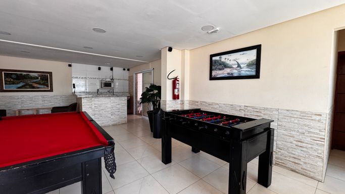 O condomínio oferece portaria presencial 24 horas, piscina descoberta, salão de festas, salão de jogos e espaço gourmet, agregando segurança, lazer e praticidade para os moradores. A localização frente mar, a poucos metros de distância da praia, torna este apartamento ainda mais atrativo para quem valoriza qualidade de vida e proximidade com o mar.