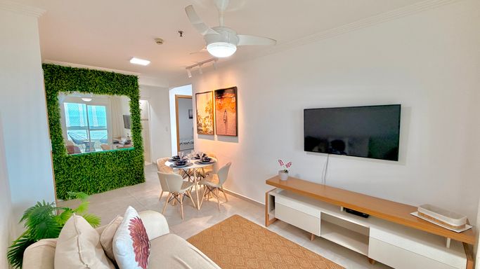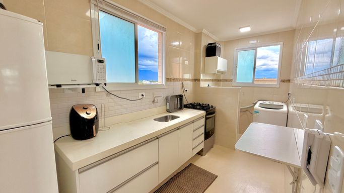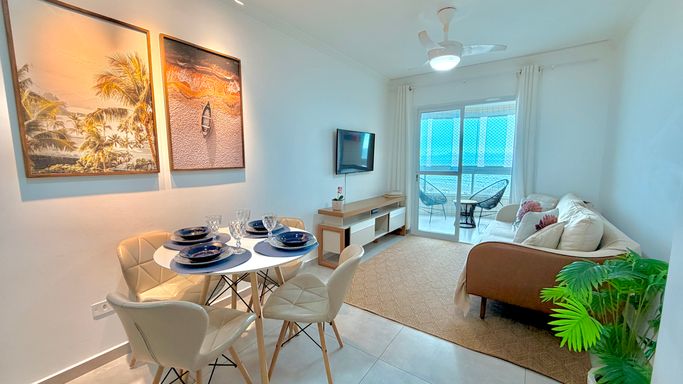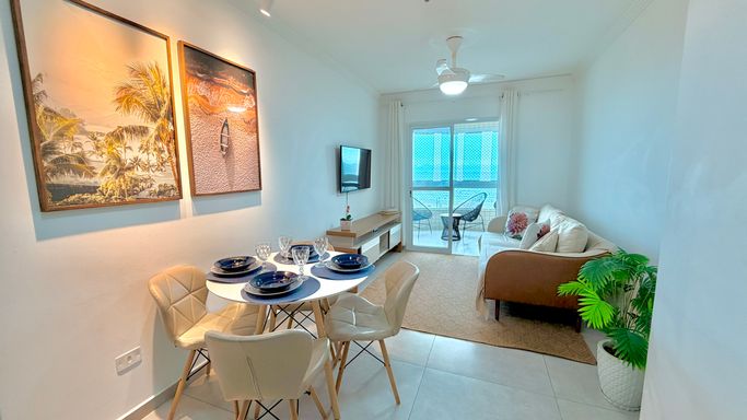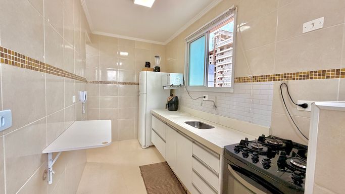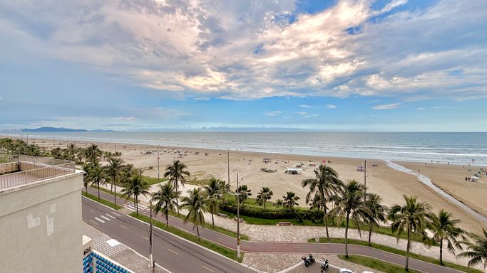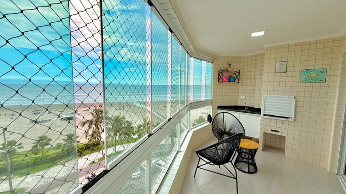 Apartamento à venda em Praia Grande no bairro Maracanã, com 86 metros de área útil, distribuídos em 2 dormitórios, sendo 1 suíte, além de sala ampla e bem integrada aos ambientes. O imóvel conta com sacada grande, vista mar e posição frente mar, proporcionando excelente ventilação e iluminação natural. A cozinha é espaçosa e funcional, assim como os quartos, que oferecem conforto no dia a dia. O apartamento está mobiliado, possui churrasqueira a carvão e 1 vaga de garagem, reunindo praticidade e qualidade de vida em uma ótima localização.
