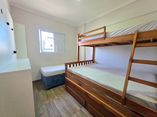 Excelente oportunidade de apartamento à venda em Praia Grande, localizado no bairro Nova Mirim, a apenas 100 metros da praia. Este imóvel oferece conforto, funcionalidade e uma ótima localização, ideal para quem busca viver próximo ao mar com praticidade e qualidade de vida. Com 60 metros de área útil, o apartamento conta com dois quartos, sendo uma suíte, um banheiro social e uma vaga de garagem livre.