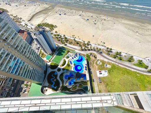 Apartamento à venda em Praia Grande na Nova Mirim, localizado de frente para o mar e com excelente aproveitamento dos espaços. O imóvel possui 69 metros de área útil, distribuídos em dois quartos, sendo uma suíte, além de um banheiro social. A sala é espaçosa e já se encontra mobiliada, integrada à sacada gourmet com churrasqueira a carvão, criando um ambiente funcional para o dia a dia. A cozinha é planejada e os quartos contam com móveis planejados, proporcionando melhor organização dos ambientes. O apartamento aceita financiamento bancário, possui uma vaga de garagem livre e conta com mobília inclusa, com exceção dos eletrodomésticos, itens pessoais e decoração. O empreendimento oferece portaria presencial 24 horas e ampla área de lazer, com piscina adulto e infantil, salão de festas, salão de jogos, cinema, playground, academia, minimercado e campo de futebol.
