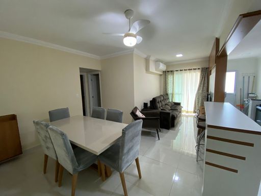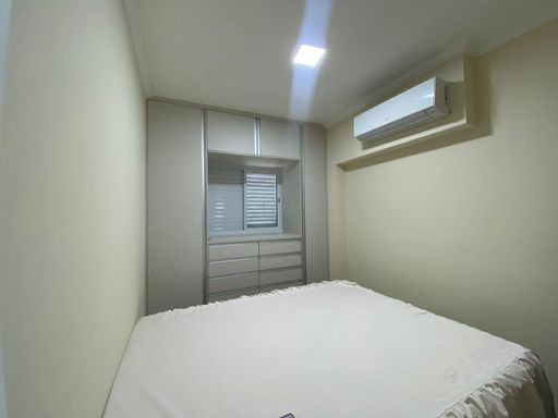 O apartamento possui dois quartos, sendo uma suíte, sala ampla e mobiliada, cozinha planejada e sacada que proporciona ótima ventilação natural. O imóvel está totalmente mobiliado, com ar-condicionado no quarto do casal e móveis planejados nos dormitórios e na cozinha. Serão retirados apenas os itens pessoais, permanecendo toda a mobília planejada.