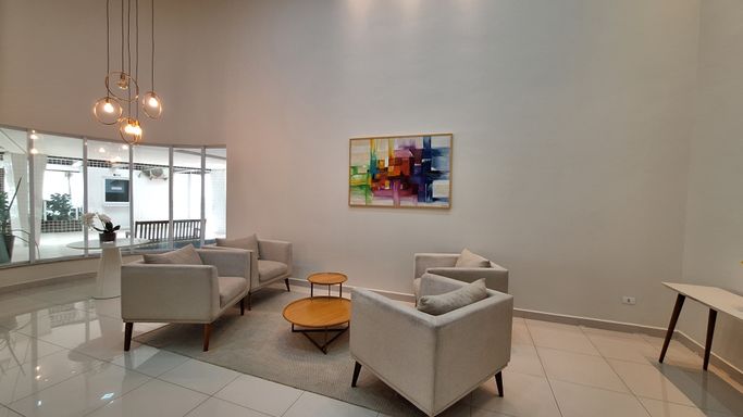 Sala espaçosa e mobiliada