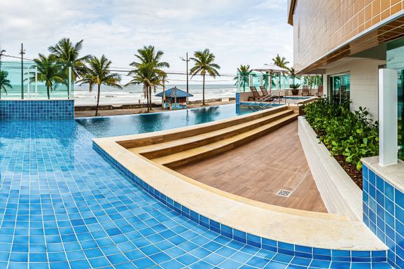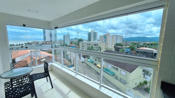 Apartamento 2 dormitórios com vista frontal em Mongaguá, localizado em um empreendimento com portaria presencial e ampla infraestrutura de lazer. O imóvel possui 75 metros de área útil, dois quartos, sendo um deles suíte, além de um banheiro social. A sacada gourmet proporciona uma vista frontal panorâmica para o mar, ideal para aproveitar momentos de descanso. A unidade conta com uma vaga de garagem livre e está disponível para financiamento bancário.