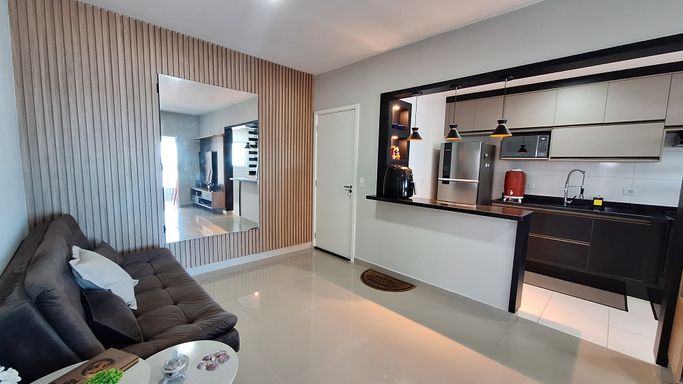 Sala espaçosa e mobiliada