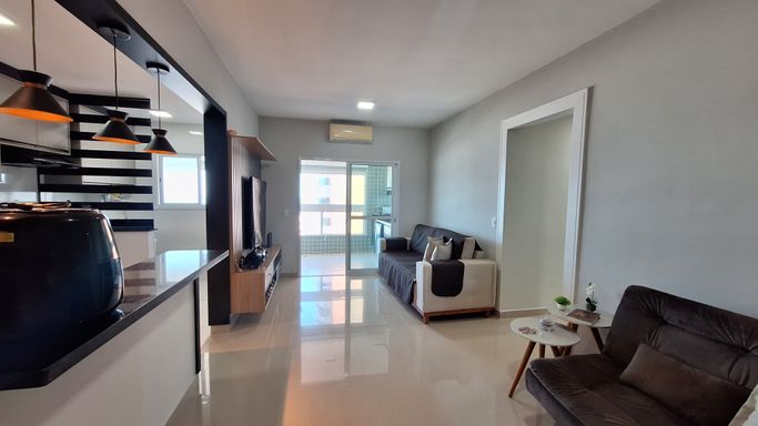 Apartamento à venda em Mongaguá com 78 metros de área útil, localizado em prédio frente mar, oferecendo praticidade e conforto em um imóvel totalmente mobiliado, com mobília inclusa, exceto itens pessoais e decoração. O imóvel possui 2 quartos, sendo 1 suíte, além de 1 banheiro social, sala espaçosa e mobiliada, cozinha planejada e quartos com móveis planejados, garantindo funcionalidade no dia a dia. Conta ainda com sacada gourmet equipada com churrasqueira elétrica, ar condicionado instalado e 1 vaga de garagem livre. O empreendimento dispõe de portaria eletrônica, piscina e salão de festas, proporcionando comodidade e lazer aos moradores. Aceita financiamento bancário, facilitando a aquisição.
