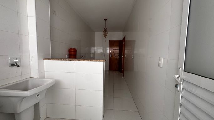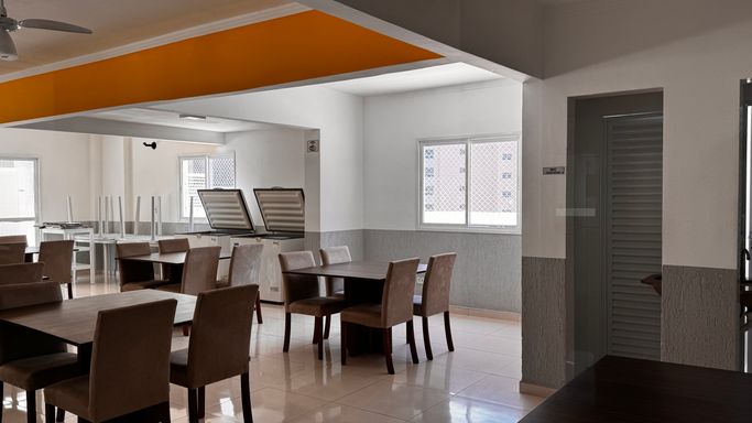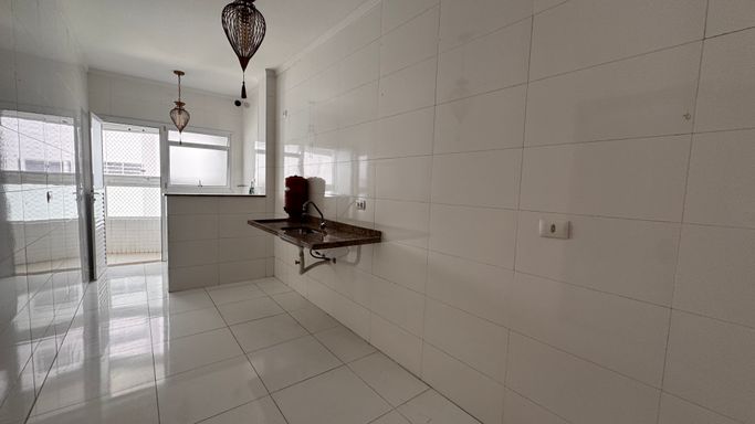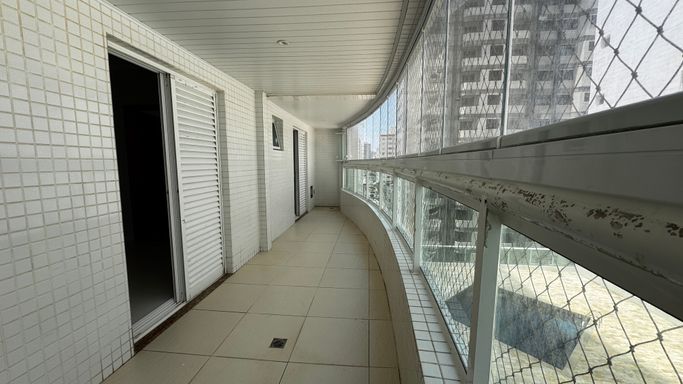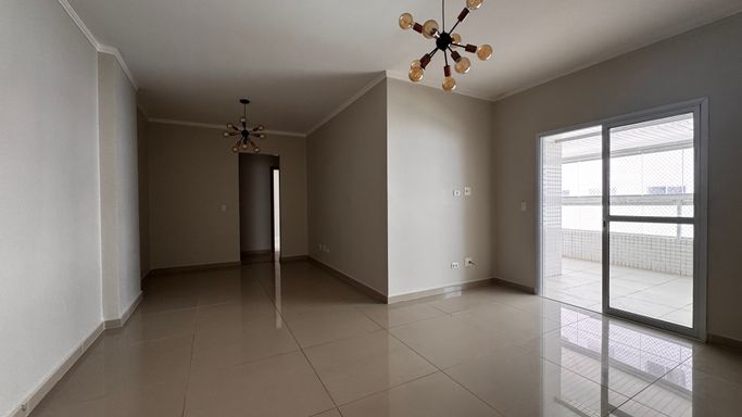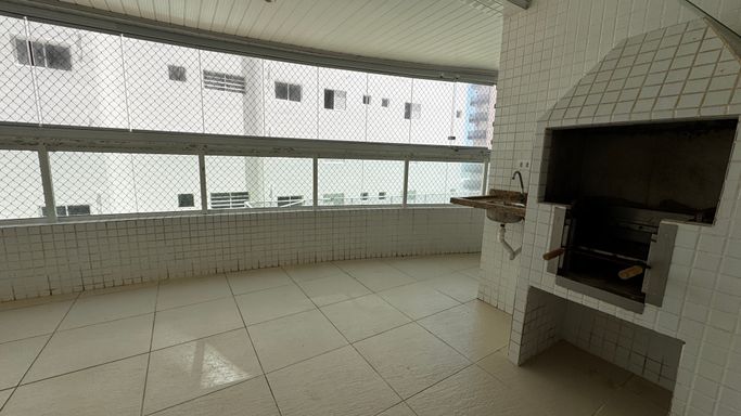 Este apartamento à venda em Praia Grande na Vila Caiçara está localizado em prédio frente mar e aceita financiamento bancário, sendo uma opção para quem busca metragem ampla e localização privilegiada. Com 101 metros de área útil, o imóvel apresenta ambientes bem distribuídos, com sala espaçosa integrada à sacada gourmet, que conta com churrasqueira a carvão ecológica, atendendo à proposta funcional do apartamento.