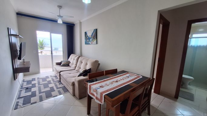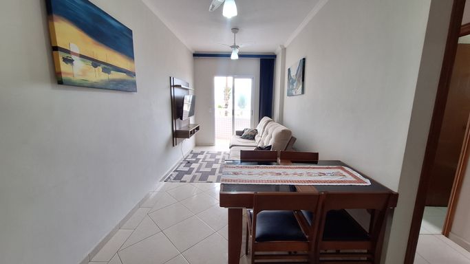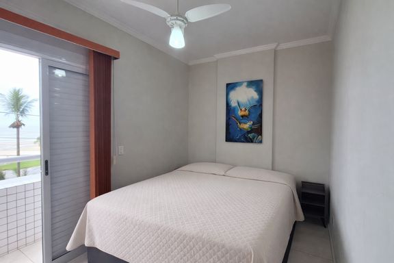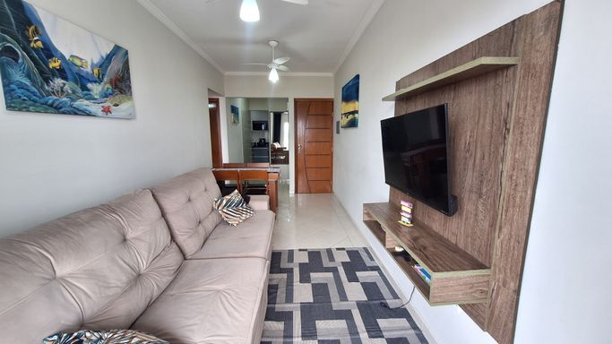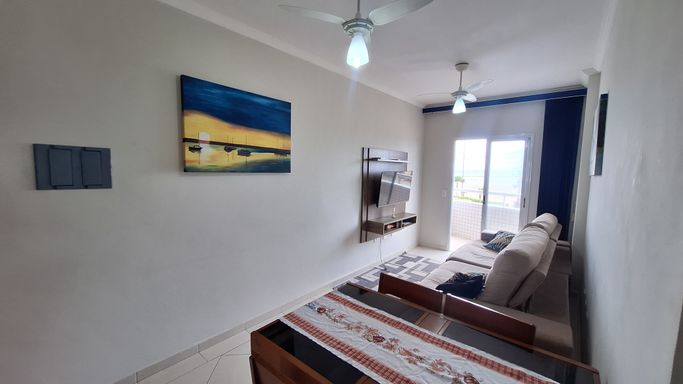 Apartamento à venda em Praia Grande no bairro Vila Caiçara, localizado de frente para o mar, com vista frontal e excelente distribuição interna. O imóvel possui 64 metros de área útil, 2 quartos, sendo 1 suíte, 1 banheiro social e 1 vaga de garagem livre. A sala é espaçosa e mobiliada, proporcionando conforto no dia a dia, integrada a uma sacada que valoriza ainda mais a vista. A cozinha é planejada, oferecendo praticidade na organização. A mobília está inclusa, estando totalmente mobiliado, pronto para morar ou investir. Aceita financiamento bancário, facilitando a aquisição.