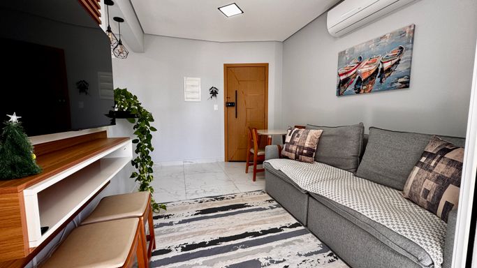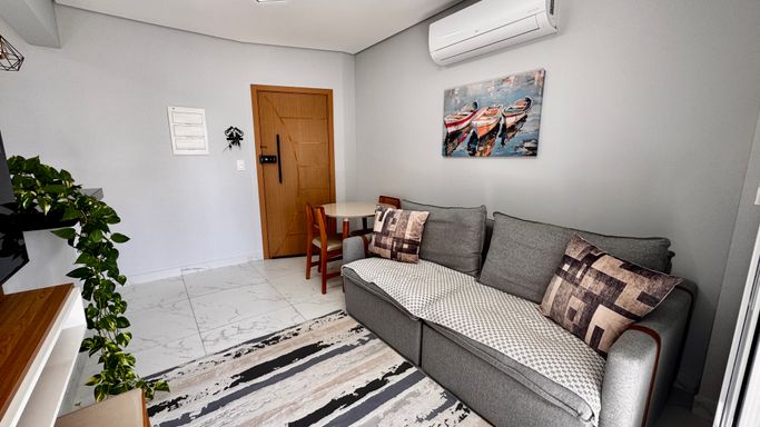 O apartamento está mobiliado, sendo retirados apenas itens pessoais, TV, ventiladores, utensílios de cozinha, micro-ondas e aparadores da cozinha e do quarto. Possui ar condicionado em todos os ambientes, sala espaçosa e mobiliada e cozinha planejada, otimizando o espaço e garantindo praticidade no dia a dia. Conta ainda com 1 vaga de garagem coletiva e aceita financiamento direto, facilitando a negociação.