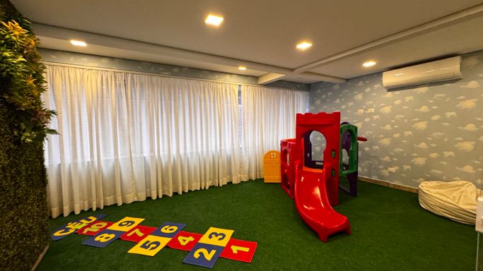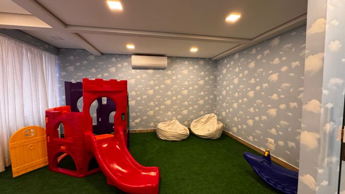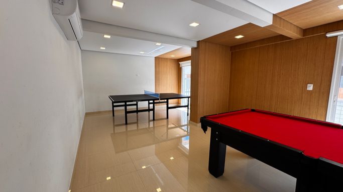 O empreendimento oferece estrutura completa com portaria presencial, piscina, salão de festas, salão de jogos, sauna, brinquedoteca e academia, atendendo diferentes perfis e proporcionando lazer e segurança.