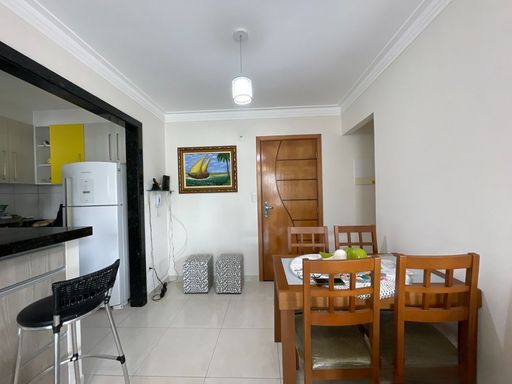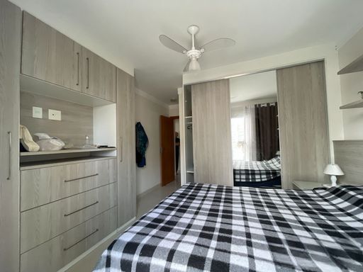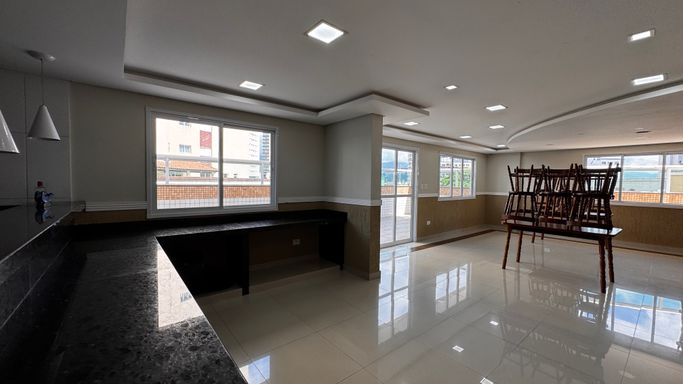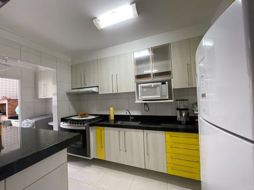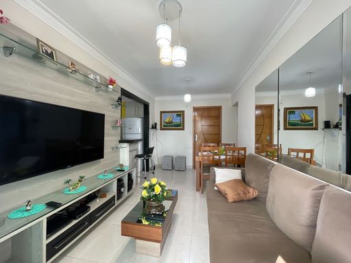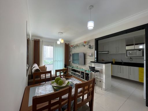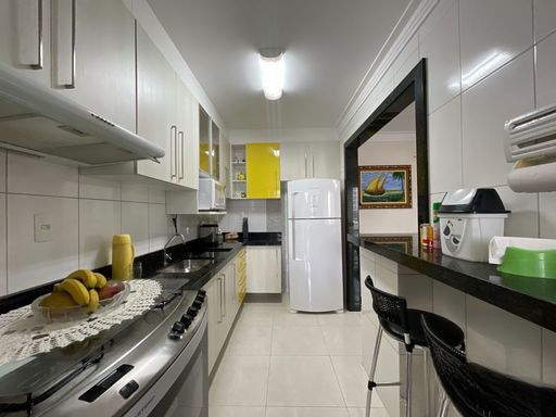 A sala é espaçosa e mobiliada, integrada à sacada gourmet com churrasqueira a carvão, proporcionando um ambiente adequado para uso diário e momentos de convivência. A cozinha é planejada e os quartos contam com móveis planejados, garantindo melhor aproveitamento dos espaços. O apartamento possui duas vagas livres de garagem e aceita financiamento bancário. A mobília está inclusa, mediante confirmação na proposta, com retirada dos itens pessoais.