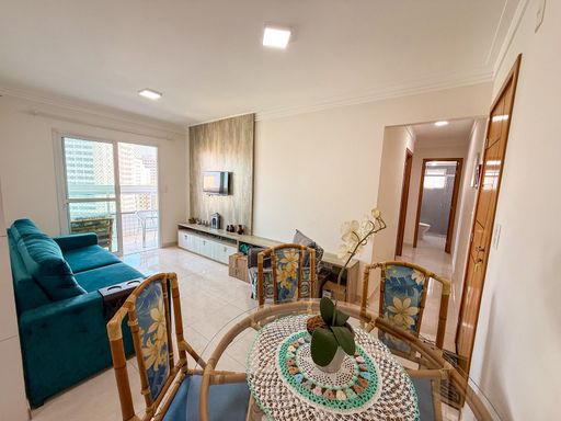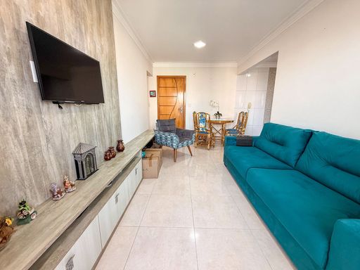 Apartamento à venda em Praia Grande no Caiçara com 80,78 metros de área útil, ideal para quem busca conforto, praticidade e proximidade com a praia. O imóvel está localizado a 200 metros do mar e possui 2 quartos, sendo 1 suíte, 1 banheiro social, sala espaçosa e mobiliada, cozinha planejada, quartos com móveis, sacada gourmet com churrasqueira ecológica e 2 vagas de garagem livres. O apartamento está mobiliado, aceita financiamento bancário e não aceita permuta. A boa distribuição dos ambientes e a estrutura do empreendimento tornam este imóvel uma excelente opção para moradia ou veraneio.