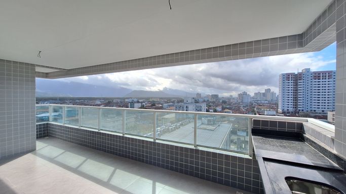 Este apartamento à venda em Praia Grande no bairro Vila Caiçara está localizado em prédio frente mar e aceita financiamento bancário. Com 86 metros de área útil, o imóvel possui duas suítes, um banheiro social e uma vaga de garagem livre. A unidade conta com piso em porcelanato e apresenta uma planta funcional, com sala espaçosa integrada aos ambientes.