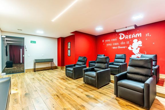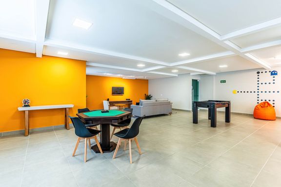 O empreendimento oferece portaria presencial 24 horas e uma estrutura de lazer completa, com piscina, cinema, salão de festas, salão de jogos, sauna, brinquedoteca, academia e solarium.