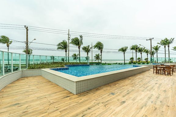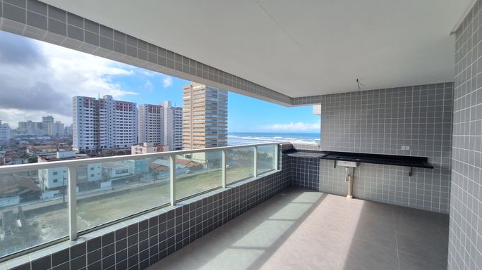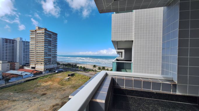 Este apartamento à venda em Praia Grande no bairro Vila Caiçara está localizado em prédio frente mar e aceita financiamento bancário. Com 86 metros de área útil, o imóvel possui duas suítes, um banheiro social e uma vaga de garagem livre. A unidade conta com piso em porcelanato e apresenta uma planta funcional, com sala espaçosa integrada aos ambientes.