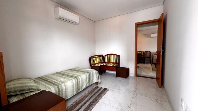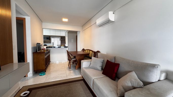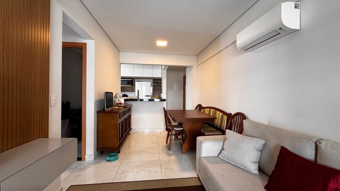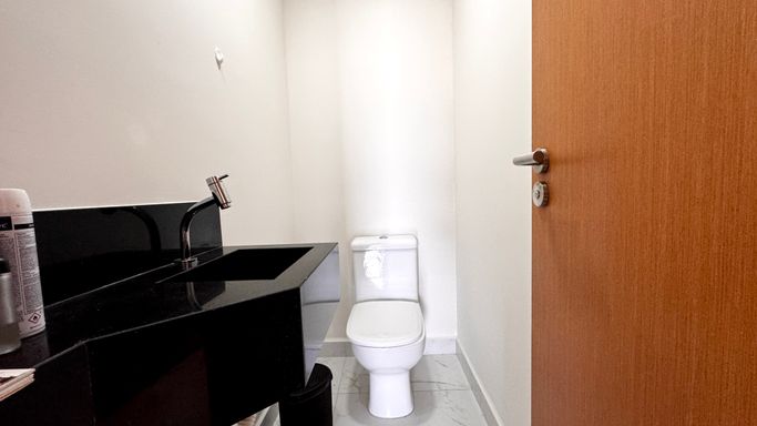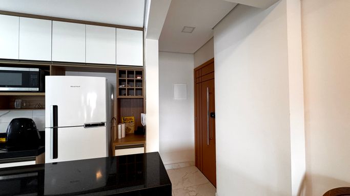 O imóvel conta com duas suítes, além de um lavabo que atende a área social. A vaga de garagem é demarcada, oferecendo mais comodidade. A mobília está inclusa, sendo que serão retirados apenas os itens pessoais. O apartamento também aceita permuta em carro, conforme condições de negociação.