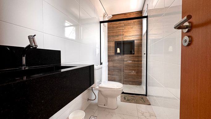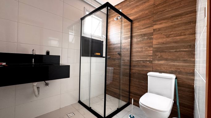 O empreendimento dispõe de portaria 24 horas, piscina e área de lazer completa, com salão de festas, salão de jogos, sauna, brinquedoteca, academia e miniquadra, garantindo segurança e opções de lazer aos moradores.