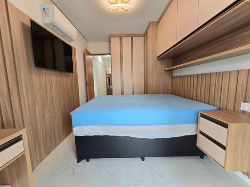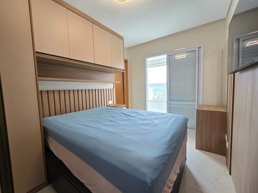 Apartamento à venda em Praia Grande na Vila Caiçara com excelente localização, a 400 metros de distância da praia, ideal para quem busca conforto, praticidade e qualidade de vida no litoral. O imóvel possui 88,89 metros de área útil, distribuídos em 2 quartos, sendo 1 suíte, 1 banheiro social, sala espaçosa e mobiliada, cozinha planejada, quartos com móveis planejados e sacada gourmet. Está totalmente mobiliado, com mobília inclusa na venda, além de ar condicionado em todos os ambientes. Conta ainda com 2 vagas de garagem e aceita financiamento bancário, facilitando a aquisição. O empreendimento oferece portaria presencial, piscina, salão de festas, salão de jogos, sauna, brinquedoteca, academia e solarium, proporcionando lazer e segurança para toda a família. Entre os diferenciais que auxiliam na decisão de compra estão a proximidade da praia, a infraestrutura completa de lazer, os ambientes planejados e o fato de estar pronto para morar.