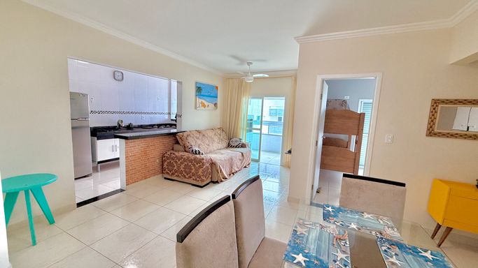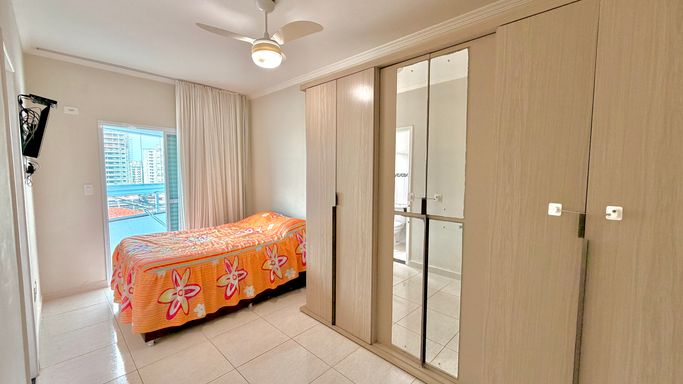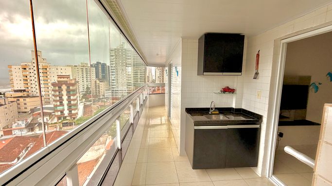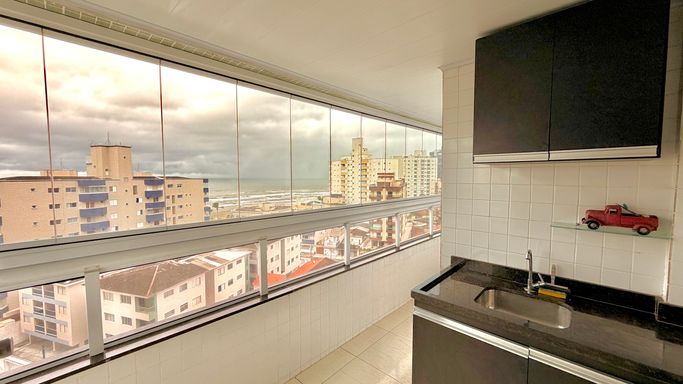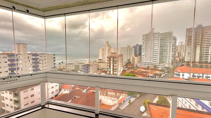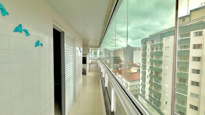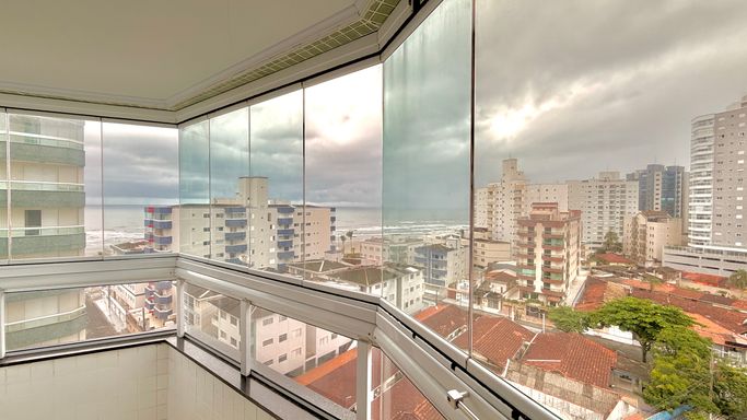 Apartamento à venda em Praia Grande no bairro Vila Caiçara, com 93,78 metros de área útil, distribuídos em 2 dormitórios, sendo 2 suítes, além de 1 banheiro social. O imóvel conta com sala espaçosa, cozinha ampla, quartos confortáveis e bem distribuídos, sacada grande com churrasqueira, vista para o mar e excelente iluminação natural. Possui 2 vagas de garagem e está mobiliado, oferecendo praticidade e conforto para moradia ou investimento. Localizado em região valorizada, com fácil acesso a comércios, serviços e à orla da praia, além de aceitar financiamento bancário.