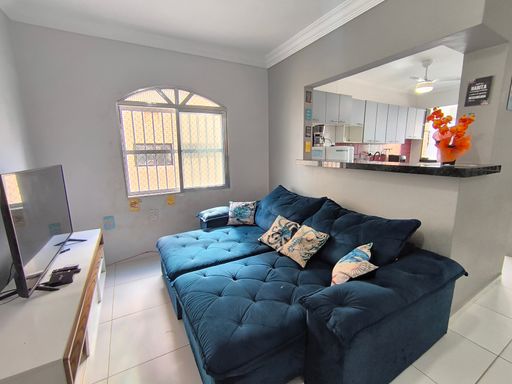 O apartamento conta com 77 metros de área útil, distribuídos de forma funcional. Possui 2 quartos, sendo 1 suíte, além de 1 banheiro social. A sala é espaçosa e mobiliada, proporcionando um ambiente confortável para convivência e descanso. A cozinha planejada oferece melhor aproveitamento de espaço e organização no dia a dia. O imóvel está totalmente mobiliado, sendo que a mobília está inclusa, com exceção dos itens que serão retirados: filtro de água, ventiladores de chão, TV.