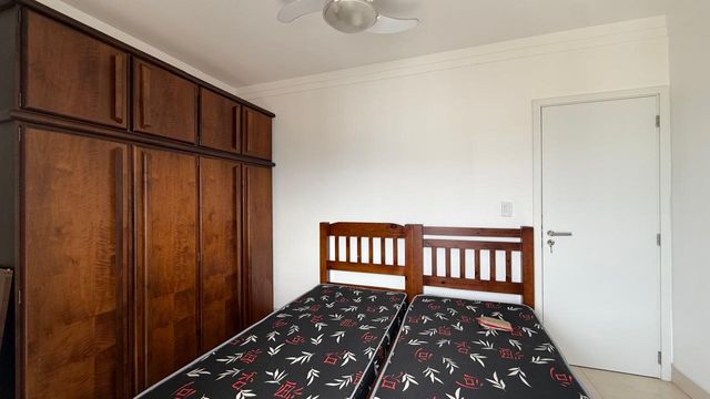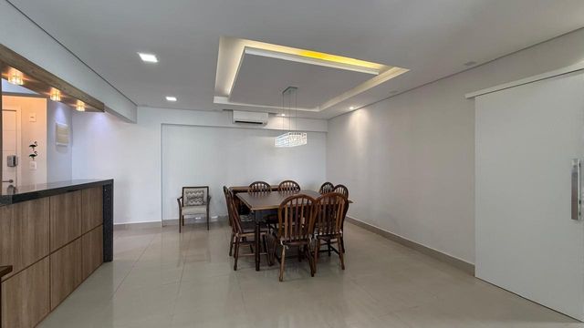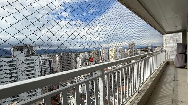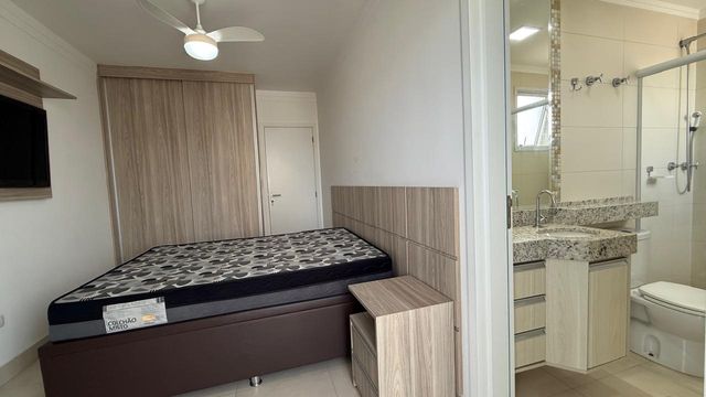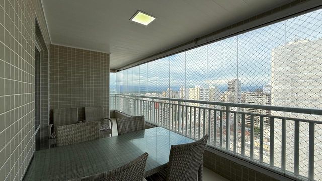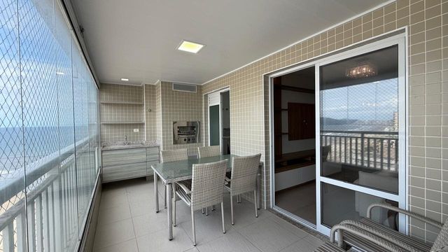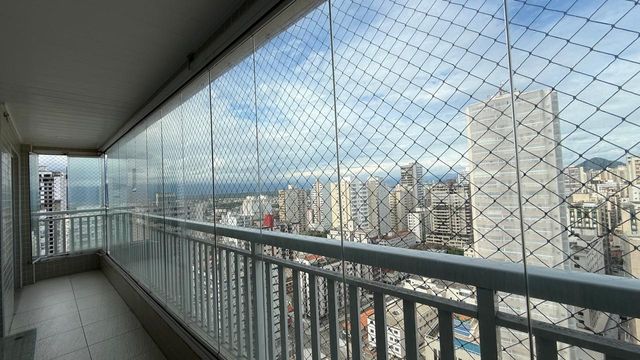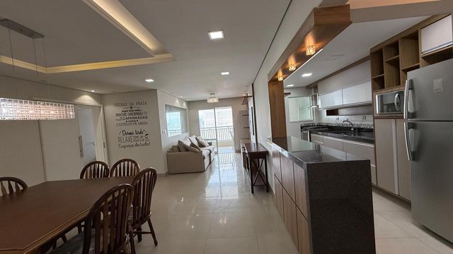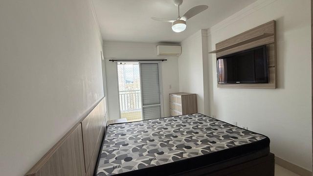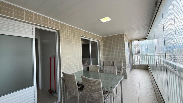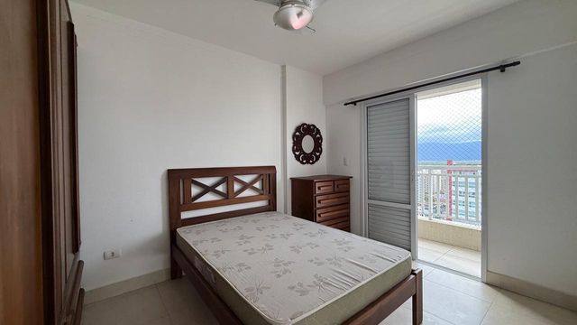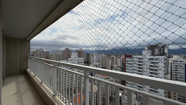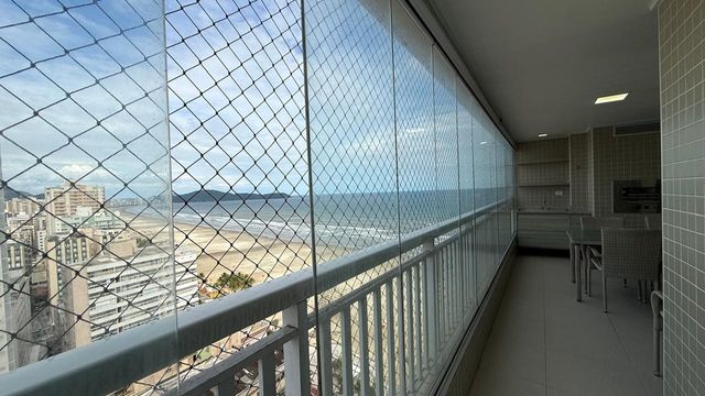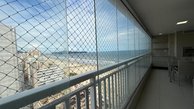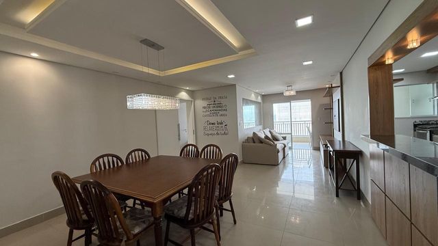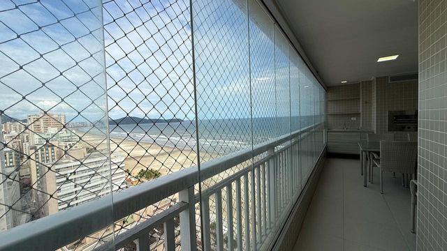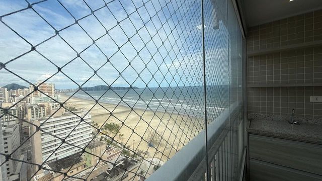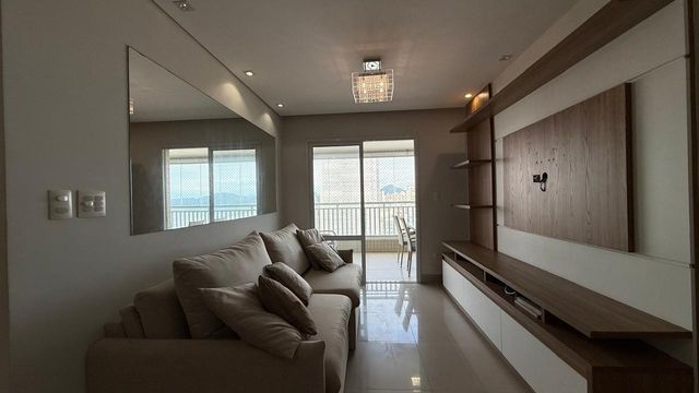 Apartamento à venda em Praia Grande no bairro Aviação, localizado em prédio frente mar e com excelente padrão de construção. O imóvel possui três quartos, sendo uma suíte, banheiro social e duas vagas de garagem livres. A sala é espaçosa e já está mobiliada, proporcionando conforto para momentos em família e recepção de visitas. A cozinha é planejada e os quartos contam com móveis planejados, oferecendo melhor aproveitamento dos espaços.