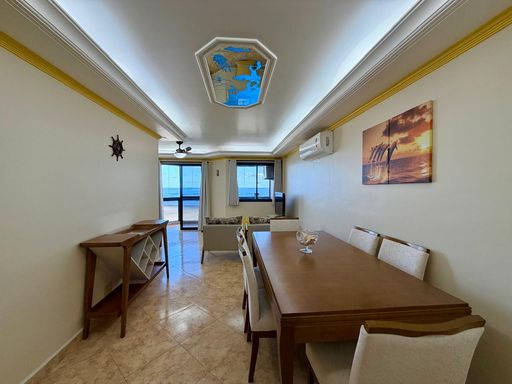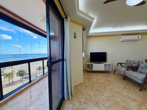 Apartamento à venda em Praia Grande na Aviação, frente mar, com localização privilegiada e vista deslumbrante. Este imóvel conta com três quartos, sendo uma suíte, além de dependência de empregada, proporcionando espaço e conforto para toda a família. Com 124 metros de área útil, o apartamento possui duas vagas de garagem, lavabo, banheiro social e banheira, garantindo praticidade e bem-estar. A sala de jantar e a sala de estar são amplas e totalmente mobiliadas, oferecendo um ambiente acolhedor para momentos de lazer e convivência. A sacada envidraçada amplia a vista para o mar e a luminosidade natural, enquanto a cozinha planejada e os quartos com ar condicionado completam a infraestrutura do imóvel. Toda a mobília está inclusa, permitindo que o novo morador se mude sem precisar se preocupar com nada.
