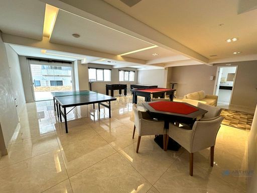 Fica totalmente mobiliado saindo apenas mesa na sacada e itens pessoais