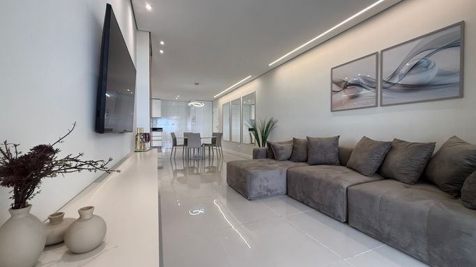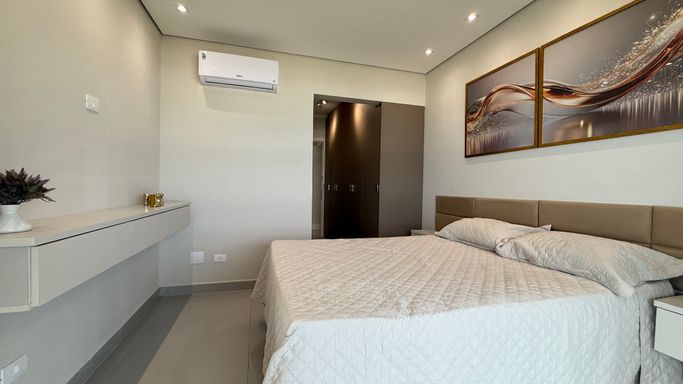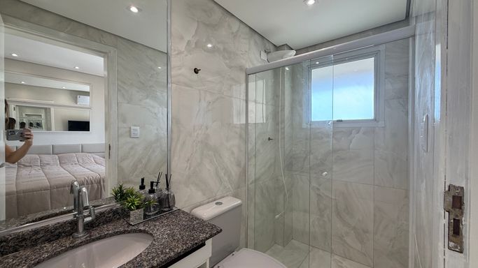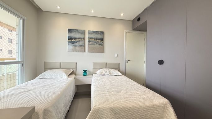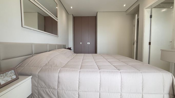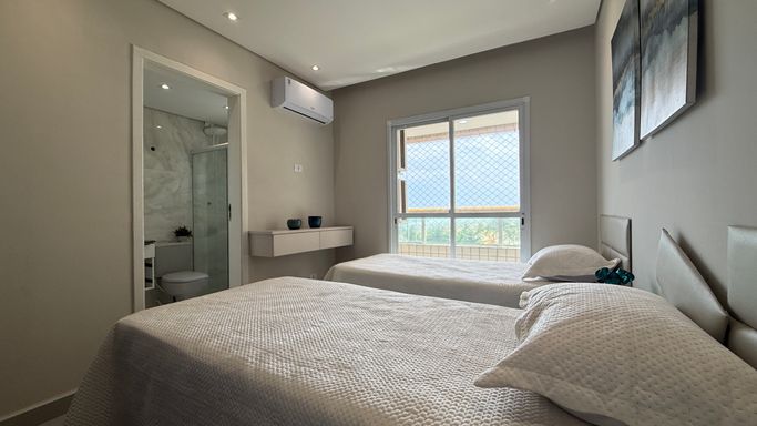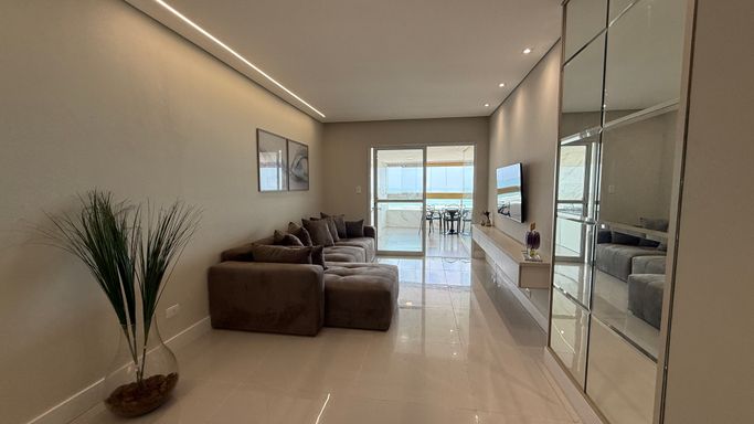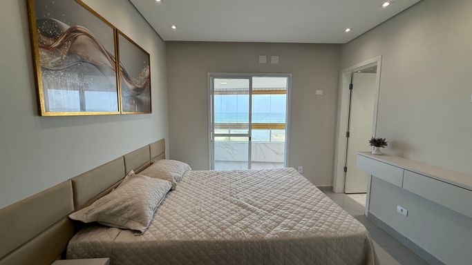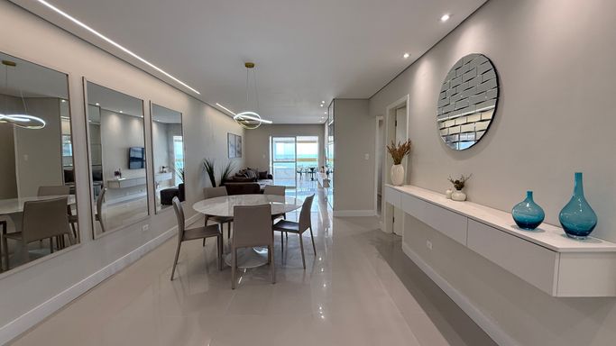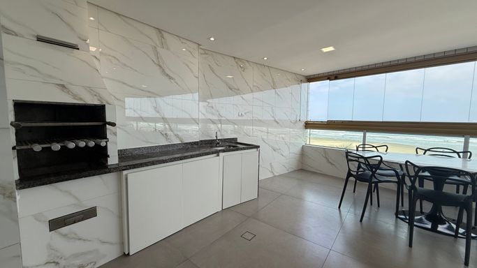 Este imóvel oferece conforto e praticidade com frente mar e excelente aproveitamento de espaço, somando 130 metros de área útil. O apartamento dispõe de três dormitórios, sendo três suítes, além de um banheiros, lavabo para visitas. A cozinha é integrada à sala de estar, proporcionando um ambiente moderno e funcional, com varanda envidraçada que oferece iluminação natural e integração com a área externa. A unidade conta com duas vagas de garagem e uma churrasqueira à carvão, tornando o dia a dia mais prático e agradável. A localização permite fácil acesso à praia, serviços e lazer da região, tornando o empreendimento uma opção atraente para moradia permanente ou temporada.