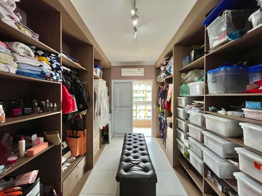 Está totalmente mobiliado, com móveis planejados nos quartos e na cozinha, ar condicionado na sala e em uma das suítes, além de closet. A mobília está inclusa, sendo retirados apenas os eletrodomésticos, cama da suíte, itens pessoais e objetos de decoração. O apartamento conta com duas vagas de garagem livres e aceita financiamento bancário, pagamento à vista ou permuta por carro.