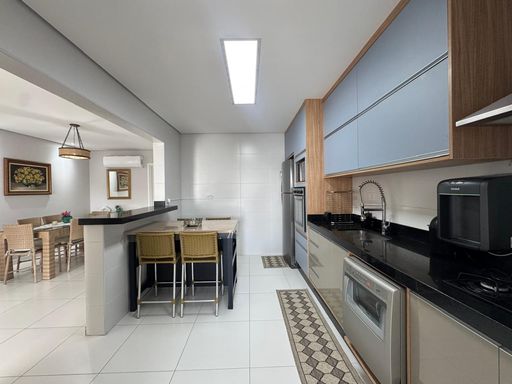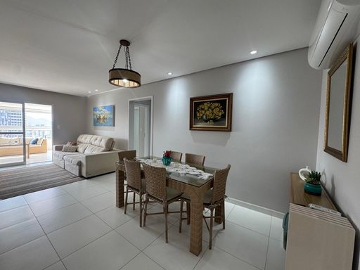 Este apartamento oferece o equilíbrio perfeito entre conforto e sofisticação, com uma vista frontal para o mar que proporciona momentos únicos. Com três dormitórios sendo três suítes, o imóvel possui sala espaçosa, sacada gourmet equipada com churrasqueira elétrica e está totalmente mobiliado, pronto para morar. A área útil de 142 metros quadrados foi projetada para garantir praticidade no dia a dia. Além disso, conta com ar condicionado, duas vagas de garagem e um banheiro social. O condomínio oferece estrutura completa de lazer e segurança com portaria 24 horas, piscina adulta e infantil, salão de festas, salão de jogos, academia e espaço kids, ideal para toda a família.