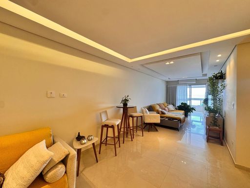 Apartamento à venda em Praia Grande no bairro aviação com localização frente mar, ideal para quem busca conforto, espaço e praticidade. Este imóvel possui 177 metros de área útil, conta com três quartos, sendo três suítes, além de um lavabo e um banheiro social, oferecendo excelente distribuição dos ambientes. A sala é espaçosa e totalmente mobiliada, integrada à sacada gourmet, proporcionando um ambiente funcional e agradável. A cozinha é planejada e equipada com fogão de indução, enquanto os quartos possuem móveis planejados. O apartamento está totalmente mobiliado, com exceção de um aparador, um bistrô com cadeiras, plantas e itens pessoais que serão retirados. Projetado por arquiteto, o imóvel dispõe de ar-condicionado em todos os ambientes e duas vagas de garagem demarcadas. Aceita financiamento bancário e está inserido em um empreendimento completo, com diversas opções de lazer e segurança para toda a família.