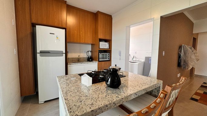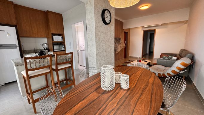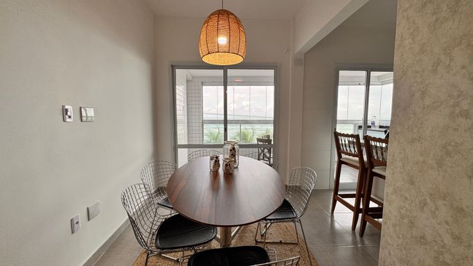 Apartamento à venda em Praia Grande no Flórida, localizado frente mar, ideal para quem busca conforto e praticidade em uma das regiões mais valorizadas da cidade. O imóvel possui 102 metros de área útil, distribuídos em 3 quartos, sendo 1 suíte, sala espaçosa e mobiliada com ar-condicionado, cozinha planejada, 1 banheiro social e 1 lavabo. Conta com sacada gourmet e churrasqueira, com possibilidade de utilização elétrica ou ecológica. O apartamento está totalmente mobiliado, com a mobília inclusa, sendo retirados apenas itens pessoais. Possui 2 vagas de garagem e oferece financiamento direto. Aceita permuta no Mato Grosso do Sul e aceita carro como parte de pagamento. O empreendimento dispõe de portaria, piscina, salão de festas, salão de jogos, sauna, brinquedoteca, academia e solarium, garantindo lazer e comodidade para toda a família.