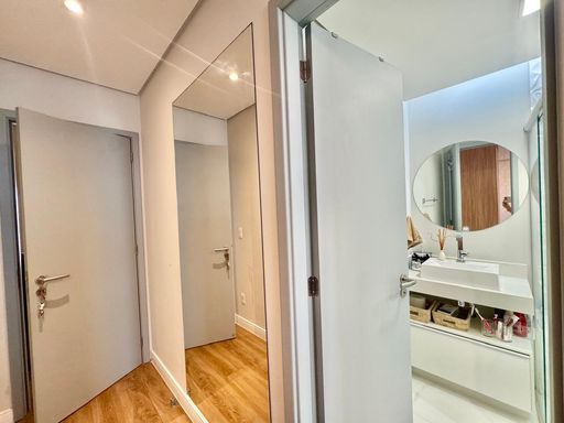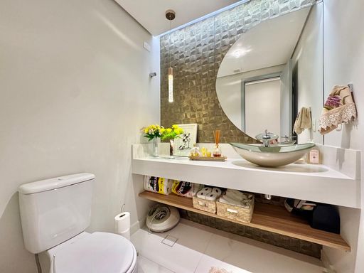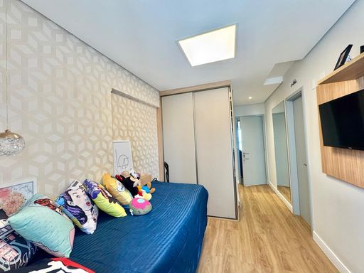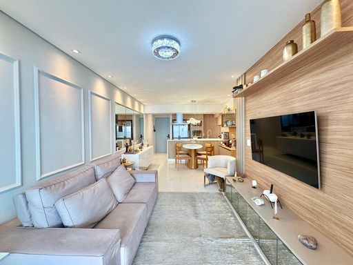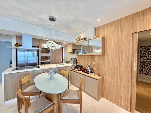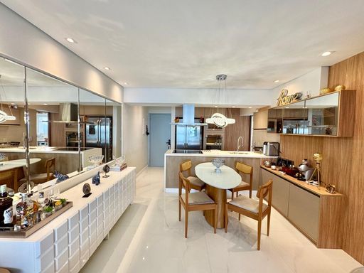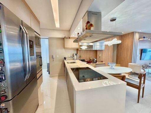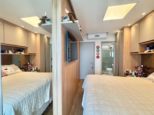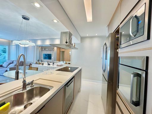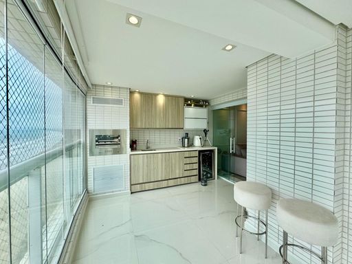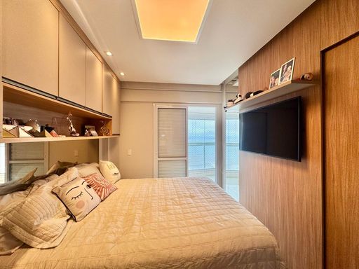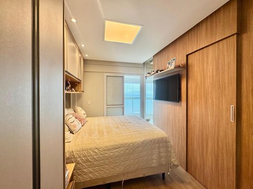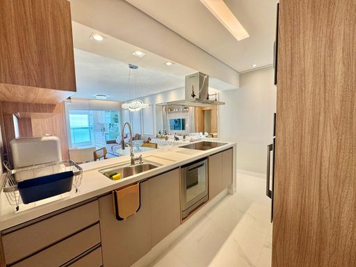 A cozinha planejada e os quartos com móveis sob medida tornam cada ambiente ainda mais funcional e aconchegante. O apartamento conta com ar-condicionado, garantindo conforto térmico durante todo o ano. A vista mar é outro diferencial que torna este imóvel único, proporcionando um ambiente tranquilo e agradável.