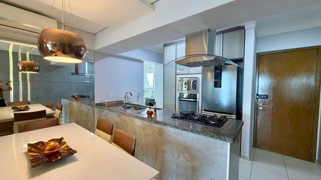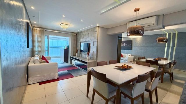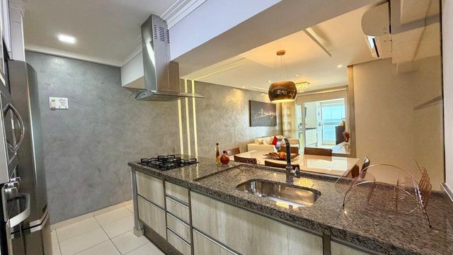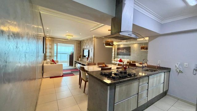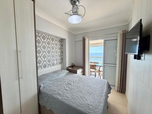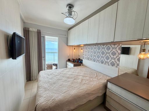 A cozinha planejada e os quartos com móveis sob medida tornam cada ambiente ainda mais funcional e aconchegante. O apartamento conta com ar-condicionado, garantindo conforto térmico durante todo o ano. A vista mar é outro diferencial que torna este imóvel único, proporcionando um ambiente tranquilo e agradável.