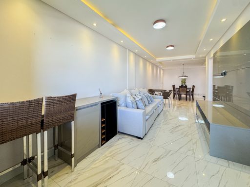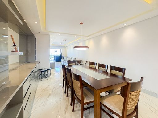 Este apartamento à venda em Praia Grande no Boqueirão é uma excelente oportunidade para quem busca morar em um imóvel amplo, mobiliado e muito bem localizado. Situado em prédio de frente para o mar, com vista frontal, oferece toda a comodidade de viver próximo à praia. São 123 metros de área útil distribuídos em três quartos, sendo duas suítes, banheiro social, sala espaçosa e mobiliada, além de sacada gourmet que proporciona momentos de lazer e descontração. A cozinha é planejada e os quartos contam com móveis sob medida, garantindo praticidade no dia a dia. O imóvel está totalmente mobiliado, permanecendo todos os móveis.