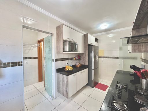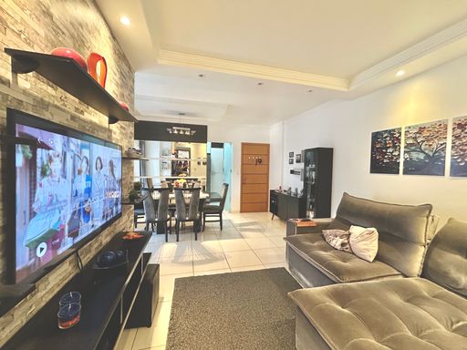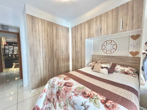 A sala espaçosa se integra com a varanda gourmet, equipada com churrasqueira, proporcionando um espaço ideal para receber amigos e familiares. A cozinha está completa, com móveis planejados, enquanto os quartos oferecem aconchego e praticidade, incluindo duas suítes e ar condicionado.