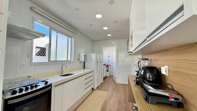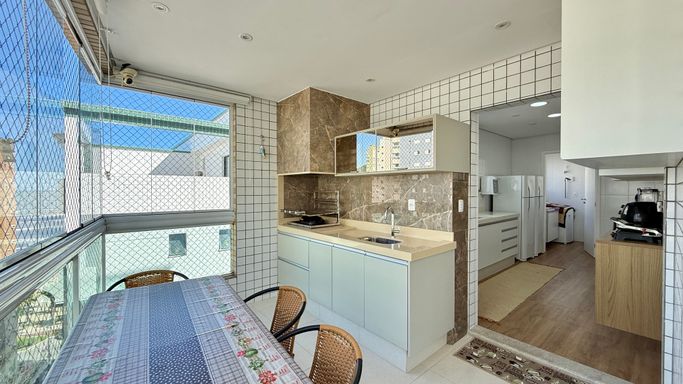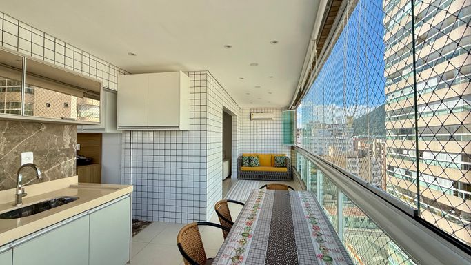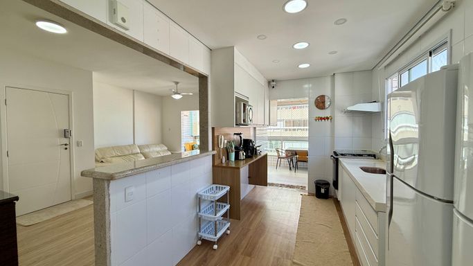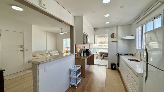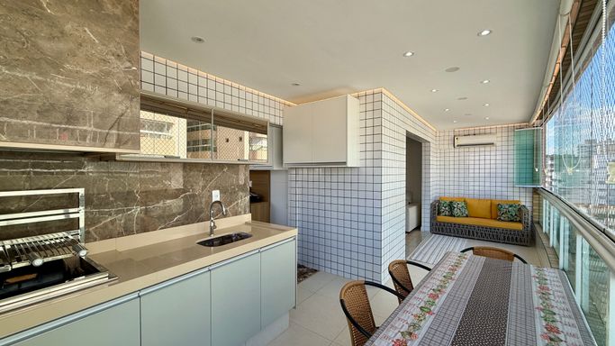A apenas 50 metros da orla, este apartamento reúne amplitude, conforto e uma vista incrível da praia. São 3 dormitórios, sendo 2 suítes, além de uma sala ampla integrada à varanda gourmet com churrasqueira a carvão o espaço perfeito para receber e aproveitar bons momentos.